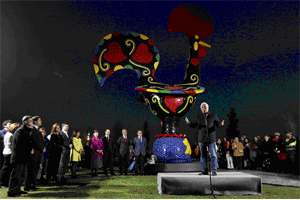 C'est le Premier Ministre en personne qui a ouvert la cérémonie d´inauguration en lançant le Pop Rooster. Alors que des milliers de lumières étaient programmées pour s'allumer, contrôlées par une télécommande, un problème technique est survenu et a plongé l'assistance dans un malaise général. La statue ne s'est pas immédiatement allumée, la télécommande n'ayant plus de batterie. C'est finalement en la branchant à un panneau électrique que la structure s'est illuminée, et que la cérémonie a pu reprendre son cours. Un imprévu qui a fait rire l'assemblée.