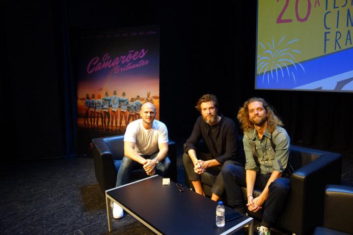 Les réalisateurs Maxime Govare et Cédric Le Gallo accompagnés du comédien Nicolas Gob présentent « Les Crevettes Pailletées » à la Festa do Cinema Francês. Une comédie haute en couleurs qui nous entraîne sur les pas d’une équipe de water-polo plus gaie que gay.