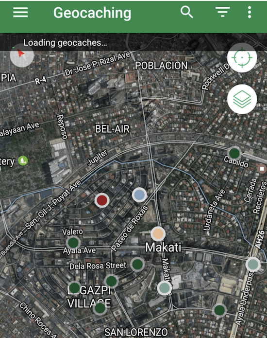 Actuellement, on compte près de 2 982 354 caches répartis dans le monde, souvent situés proches de lieux remarquables ou insolites, sur lesquels le jeu permet d'attirer l'attention. L'activité est fortement pratiquée au Etats-Unis mais moins à Manille. Elle s'y développe néanmoins, notamment à Makati et BGC.