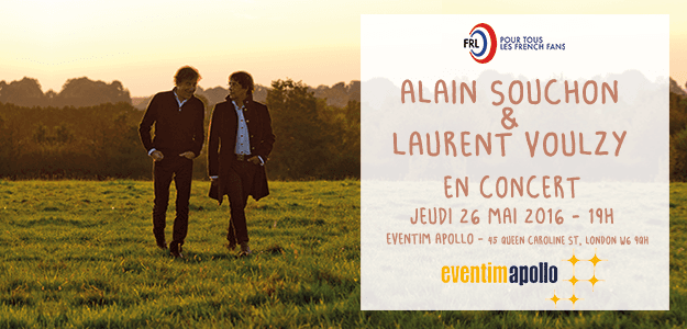 Après Julien Doré au Koko, Laurent Voulzy à la St John's Smith Square Church, Hubert Félix Thiefaine au Bush Hall, Calogero à la Scala, FRL vous apporte Alain Souchon et Laurent Voulzy réunis en concert à l'Eventim Apollo le 26 mai 2016.