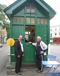 (Photo MB) - Thomas Watson et David Jones, taxi de puis 1960 et 1962 savourent leur pause déjeuner dans un shelter près de Notting Hill