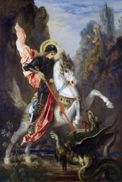 La Saint Georges est dédiée à l'officier romain, torturé et mis à mort au début du IVème siècle, lorsque l'empereur Dioclétien ordonna la persécution des Chrétiens. Mais saviez-vous qu'au XIVème siècle, il fut choisi pour être le saint patron de l'Angleterre, sous le roi Édouard III ?. Le drapeau anglais, qui comprend la croix de Saint-Georges rouge sur fond blanc, sera visible un peu partout en ville, comme les célèbres images du dragon, terrassé par le Saint ; en effet, d'après une légende médiévale, ce dernier aurait, avec l'aide du Christ, vaincu le monstre qui faisait régner la terreur dans la ville de Silène et sauvé une princesse libyenne.