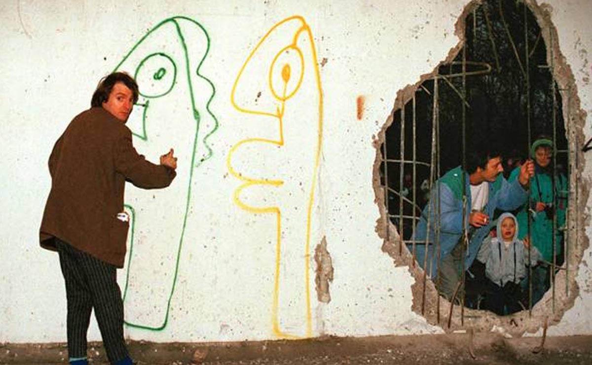 Lyonnais d'origine, il débarque à Berlin-Ouest en 1982, attiré par la scène culturelle de David Bowie, Iggy Pop, et tant d'autres. A l'époque, Berlin est encerclée, surveillée par Berlin-Est d'un côté, et l'Allemagne de l'Est de l'autre. "J'habitais juste en face du mur. Je ne suis pas venu à Berlin pour peindre le mur, ça s'est fait petit à petit, en regardant ce mur tous les jours". Une envie non planifiée, qui aurait pu lui coûter cher. "C'était illégal. Le mur était construit en retrait de la frontière, environ de 5 mètres. On était déjà à Berlin-Est, et l'on pouvait se faire arrêter par les soldats qui étaient de l'autre côté. Il fallait donc toujours faire attention". Avant d'expliquer que la police de Berlin-Ouest n'avait aucun droit de franchir la frontière. Quant aux alliés - son secteur étant dirigé par les américains -, "ils nous laissaient faire, et passaient à fond la caisse avec leur grosse jeep", ajoute t-il avec malice. Pas de tension dans sa voix au moment d'évoquer la dangerosité de son aventure. Et pourtant, il avoue avoir été prudent. Impossible donc pour lui d'aller à Berlin-Est, malgré les quelques autorisations pour la journée : il lui fallait éviter les contrôles à tout prix.
