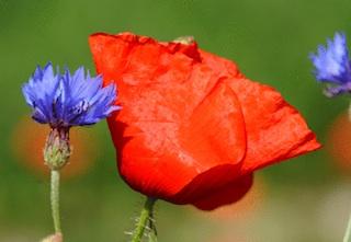 Moins connu que son équivalent britannique mais porteur du même message, le symbole du Bleuet de France a été officialisé par l'État français dès 1935. Alors que le Poppy représente les coquelicots qui fleurissaient dans les champs des Flandres lors de la première guerre mondiale, où des milliers de soldats sont morts, le terme de "Bleuets" désigne lui les soldats de la Classe 15 - nés en 1895 - en raison de l'uniforme bleu horizon dont ils étaient vêtus. Ce surnom fut rapidement adopté par les poilus plus anciens. L'origine de l'insigne remonte, quant à elle, à 1925 lorsque deux infirmières décidèrent d'organiser des ateliers où les blessés de guerre pouvaient confectionner des fleurs bleues pour qu'elles soient ensuite vendues au public et génèrent ainsi un revenu à ces soldats.