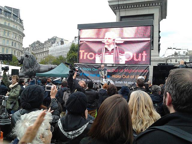Samedi 8 Octobre, à Trafalgar square, on dénote une activité inhabituelle. Grand écran, une scène où des porte-paroles se succèdent, mais surtout des centaines de personnes réunies, pancartes au poing, pour crier un seul message : la Grande-Bretagne doit ordonner le retrait des troupes d'Afghanistan. Entre applaudissements enthousiastes, cris de colères et vives approbations aux différentes allocutions, des citoyens de tous âges ont donné de la voix pour se faire entendre du gouvernement.