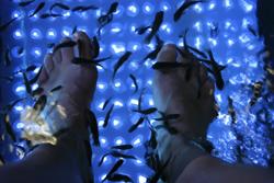 Ce traitement venu d'Orient, très populaire à Singapour et en Thaïlande, consiste à tremper ses pieds propres dans un bassin où 150 Garra Rufa se chargent de vous débarrasser de toute peau morte. Ces petits poissons omnivores, de quelques centimètres de long, sont originaires de Turquie et s'apparentent à la famille des carpes. Ils sont depuis longtemps utilisés pour traiter eczéma et psoriasis. Leur salive contient une enzyme, le diéthanol, qui améliorerait la peau. Les Gara Rufa n'ont pas de dents ; c'est par un léger mouvement de succion qu'ils enlèvent les cellules mortes de la peau sans endommager les nouvelles. La sensation s'apparente à d'agréables picotements comme un doux massage.