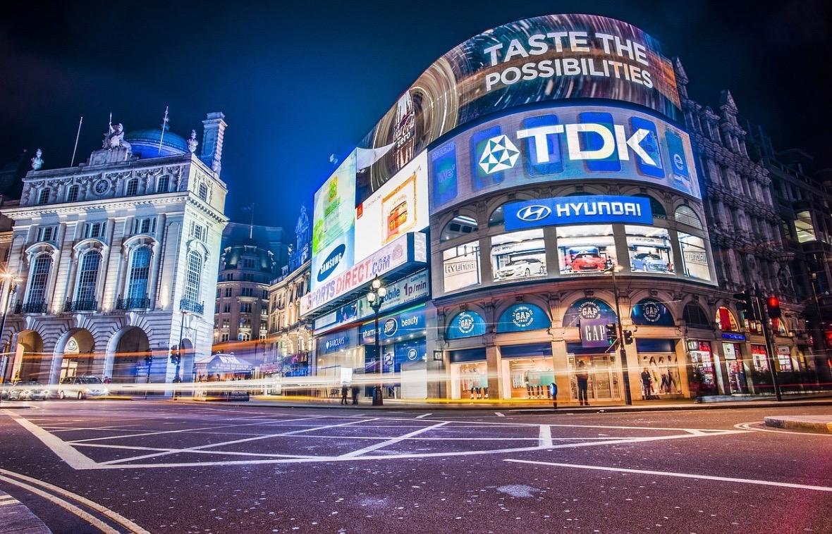 Piccadilly Circus est un lieu emblématique de Londres, notre petit Times Square à nous. La toute première publicité électronique date de? 1908, avec Perrier ! Aujourd'hui, six écrans lumineux diffusent jour et nuit des publicités taille XXL. En 108 ans de bons et loyaux services, ces écrans géants n'ont été arrêtés qu'à quatre occasions : durant les coupures d'électricité de la Seconde Guerre Mondiale, à la mort de Sir Winston Churchill (1965), à la mort de la Princesse Diana (1997) et annuellement à l'occasion « d'Une Heure pour la Planète ».