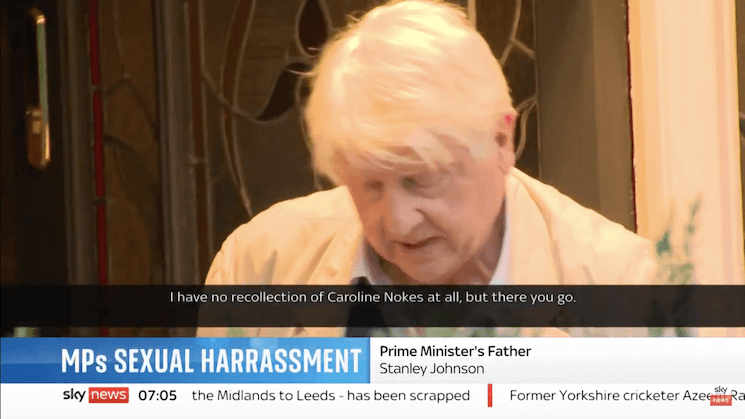 Stanley Johnson, approché par les médias britanniques, a affirmé qu’il n’avait « aucun souvenir de Caroline Nokes ». Il avait déjà été accusé de violences conjugales lorsque le journaliste Tom Bower avait révélé, dans sa biographie de Boris Johnson, qu’il avait un « tempérament violent », allant jusqu’à casser le nez de sa femme.