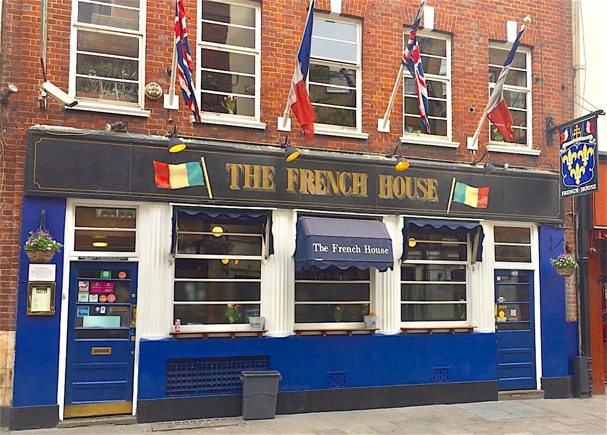 Il faut se promener en levant la tête sur Dean Street pour apprécier les beautés architecturales des anciennes maisons bourgeoises, mais aussi pour tomber par surprise sur un drapeau français entre enseigne à fleurs de lys et Liberté guidant le peuple. C'est là que depuis 1915, la French House amène un souffle d'esprit de Montmartre à Londres. Ouvert par Victor Berlemont, ancien commis du mythique chef Auguste Escoffier, et tenu par sa famille jusqu'en 1989, le pub à la française devient rapidement l'un des QG des Français Libres. Certains vont même jusqu'à dire que le Général de Gaulle aurait griffonné le brouillon de l'Appel au premier étage. La variété s'y est aussi invitée avec Maurice Chevalier ou Edith Piaf dans un récital inédit. Le patron savait recevoir ses convives jusqu'à installer un ring dans ses caves pour son ami boxeur, Georges Carpentier. Aujourd'hui, il n'est pas étonnant de croiser des touristes français venus chercher "la maison" en terre d'Albion ou même le chanteur Etienne Daho, détendu, dans son bar préféré de Londres !