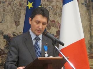 Olivier Cadic, élu à l'Assemblée des Français de l'Étranger pour le Royaume-Uni, a reçu lundi 3 octobre 2011 la médaille de l'ordre national du Mérite des mains de l'ambassadeur. Ému, il a tenu à remercier tous les gens qui l'ont accompagné tout au long de son parcours