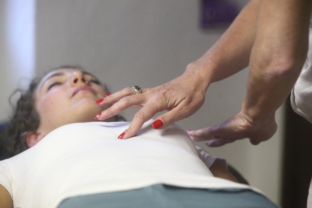 (Haydée Henderyckx-Muller pratiquant la psychonomie sur une patiente)