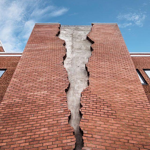 Alex Chinneck, artiste britannique prisé des férus de street-art et connu pour ses performances notamment à Londres a encore sévi. Cette fois, c'est un immeuble en brique rouge de Hammersmith que l'artiste a « déchiré » en deux. Intitulée ?Six Pins and Half a Dozen Needles? (Six épingles et une demi-douzaine d'aiguilles), c'est sa première installation permanente. La pièce haute de 20 mètres pèse 10 tonnes, est composée de 4 000 briques et 1 000 autres composants en acier. Cela donne l'impression que l'immeuble est éventré de haut en bas. Un rendu tout à fait saisissant !