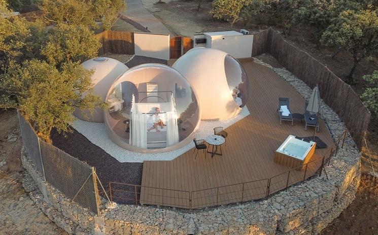 Si vous rêvez de vous endormir la tête dans les étoiles, les hôtels-bulle espagnols ne vous décevront pas. À quelques kilomètres de Tolède, les voyageurs pourront faire leurs meilleurs rêves en plein cœur de la campagne de Castille-La Manche. À Miluna Open Nature Rooms, il est possible de se connecter à la nature grâce aux vues panoramiques de ses bulles transparentes. Des chambres sphériques pour observer le ciel sans quitter son lit, tout en profitant du confort d’une suite design. Loin de la pollution lumineuse, l’expérience devient magique quand le soleil se couche. Petit-déjeuner champêtre, bain nordique privatif et silence absolu complètent ce séjour insolite, parfait pour une escapade romantique.