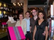 Marie-Clémentine Sodore, heureuse gagnante d'un des paniers garnis offerts par l'épicerie fine Plaisir Gourmet, en compagnie des organisateurs du tirage au sort