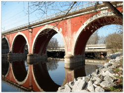 (Photo tirée du domaine public) Les Français sont partout à Madrid. Touristes ou résidents, il est possible d'entendre quelqu'un parler la langue de Molière quasiment à chaque coin de rue. Partout. À tel point qu'un pont madrilène se nomme "el puente de los franceses". Intercalé entre le Parque del oeste et la Casa de Campo, à l'entrée de la zone universitaire de Moncloa, le pont, qui traverse le Manzanares, est situé à un endroit stratégique de Madrid. C'est d'ailleurs pour faciliter les échanges commerciaux et de marchandises que sa construction fut lancée en 1860. Elle se termina en 1862. Le pont, fait de cinq arcs de briques rouges, doit son nom à la nationalité ? française, donc - des ingénieurs qui le construisirent. À l'époque, les convois ferroviaires venant du nord du pays passaient par le pont pour atteindre la gare Príncipe Pío, aujourd'hui reconvertie en centre commercial et station de trains de banlieue. De nos jours, justement, seuls les cercanías empruntent el puente de los franceses.