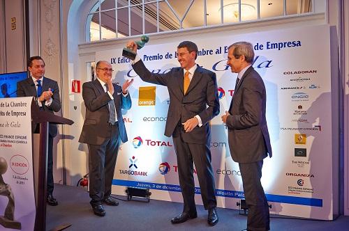 Jeudi 3 décembre, pour la 9e édition du Prix à l'esprit d'entreprise organisé et remis par le Chambre Franco-Espagnole de Commerce et d'Industrie (CFECI), c'est Jean-Marc Vignolles, Administrateur Délégué de Orange Espagne, qui a été récompensé. Au cours du dîner de gala, où étaient réunis près de 200 représentants de la communauté entrepreneuriale hispano-française, l'Ambassadeur de France en Espagne Yves Saint Geours a exprimé son appui aux initiatives de La Chambre. Les intervenants ont en outre souligné la qualité du travail effectué par le lauréat durant ses 8 années passées en Espagne, permettant de positionner Orange comme un acteur incontournable sur son secteur.