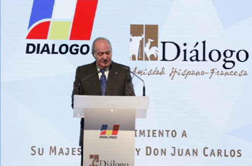 (Photo Diálogo) Après les écrivains Yasmina Reza et Mario Vargas LLosa l'an dernier, la nageuse Mireia Belmonte et le footbaleur Zinedine Zidane en 2015, et s'inscrivant dans une longue liste de prestigieux noms, symboles ou acteurs de la relation hispano-française, issus des univers politiques, économiques, sportifs, culturels ou scientifiques, le XIVe Prix Diálogo rompt avec l'habitude acquise ces dernières années visant à récompenser de façon simultanée deux représentants de l'amitié hispano-français, pour n'en distinguer cette fois-ci qu'un seul, le roi émérite Juan Calos 1er. La cérémonie officielle a généré une certaine ferveur parmi les membres et les sympathisants de Diálogo. La venue du couple royal a marqué d'une émotion toute particulière la cérémonie annuelle. Et Le choix du jury, présidé par l'ex-ministre des Sciences et de l'Innovation Cristina Garmendia, affiche l'engagement de l'association à positionner son action au plus haut niveau. Lundi, en prémices de la remise du Prix, une conférence regroupant 4 ex-ministres des Affaires étrangères (Javier Solana, Josep Piqué Camps, Miguel Angel Moratinos et José Manuel García-Margallo), avait permis de débattre -et défendre- le rôle de la Couronne dans la politique extérieure espagnole.