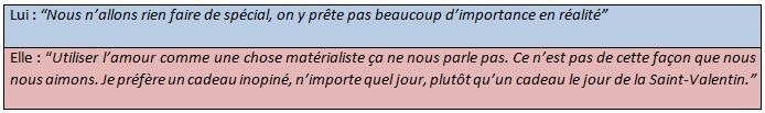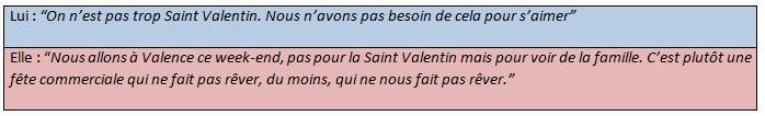 Barbara et Brieux, tous deux Français, se passeraient volontiers de la Saint-Valentin, d'ailleurs dans leur quotidien, au jour-J, rien ne change.