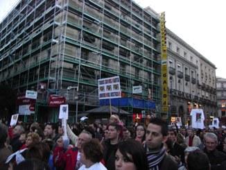 Arrivée à El Oso y el Madroño, la manifestation s'arrêtait pour écouter le discours des proches de Marta del Castillo, assassinée le 24 janvier à Séville, des mains de son ex-petit ami. Javier Casanova, oncle de la jeune fille, prenait la parole dans une ambiance saturée d'émotion. Remerciant la foule et les individus ordinaires pour leur soutien, l'homme incriminait les politiques, dont il soulignait la notable absence. Le père de Marta faisait à son tour une brève allocution, avant de se retirer, la gorge nouée par les sanglots. Parallèlement, les sympathisants recueillaient des signatures en faveur de la modification du Code Pénal. Y était notamment demandé l'organisation d'un référendum, permettant la restauration de la peine à perpétuité en cas d'homicide, de viol ou d'acte à caractère pédéraste.