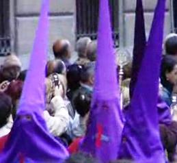 La Semaine sainte a peu à voir avec la religion pratiquée dans le silence des églises européennes. Il s'agit ici d'un spectacle rituel. On applaudit les costaleros qui savent faire "danser"la vierge au son des trompettes de l'apocalypse qui l'accompagnent dans son parcours. Même à la télévision, on admire les idoles recouvertes de vrais cheveux longs et bruns pour les Christs et les manteaux d'hermine pour les Vierges.