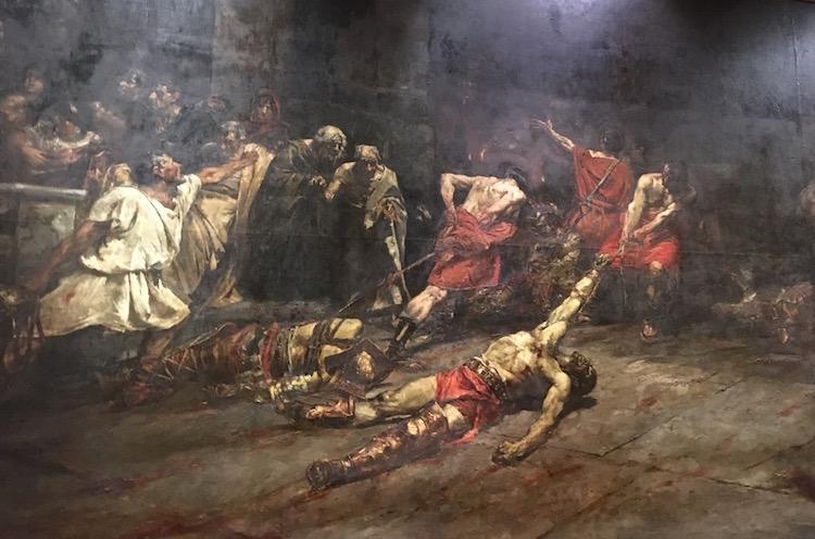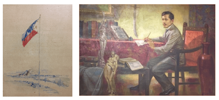 4- Le Musée national des Philippines reste un LIEU D'HISTOIRE, retraçant, à travers ses collections, quelques épisodes marquants de la construction de la nation philippine et de son identité propre. Sans doute l'imposante huile sur toile "Spoliarium", de Juan Luna y Novicio, marquera-t-elle le spectateur dès son entrée dans le musée. Et c'est sans doute à dessein qu'elle ouvre notre parcours. Cette ?uvre a en effet permis à son auteur de remporter la médaille de première classe à l'Exposition nationale espagnole des beaux-arts en 1884, elle d'ainsi démontrer l'excellence et la possible supériorité des artistes philippins sur leurs occupants espagnols. A travers le recours à la scène antique, elle dénonce d'ailleurs la violence de cette occupation. C'est le même Juan Luna y Novicio qui livrera la première représentation peinte du drapeau philippin, présentée quelques salles après. Plusieurs espaces sont, dans le même esprit, à "Rizal le réformiste" (titre du huile de Martino Abellana) et à son ?uvre.