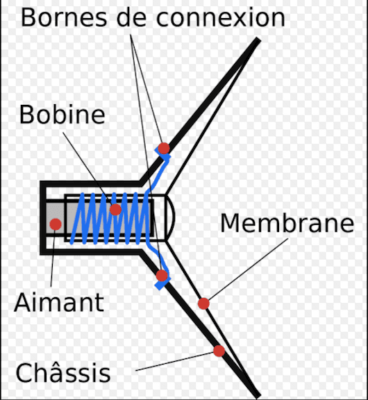 Il reçoit un courant électrique alternatif, c'est-à-dire un courant électrique qui prend des valeurs de tensions positives et négatives. A l’aide de transducteurs, il va transformer cette ondulation électrique en ondulation mécanique de même fréquence. La membrane, liée au dispositif électrique, va bouger avec la même fréquence et modifier la pression de l'air à sa surface en suivant le « rythme » du signal sonore.
