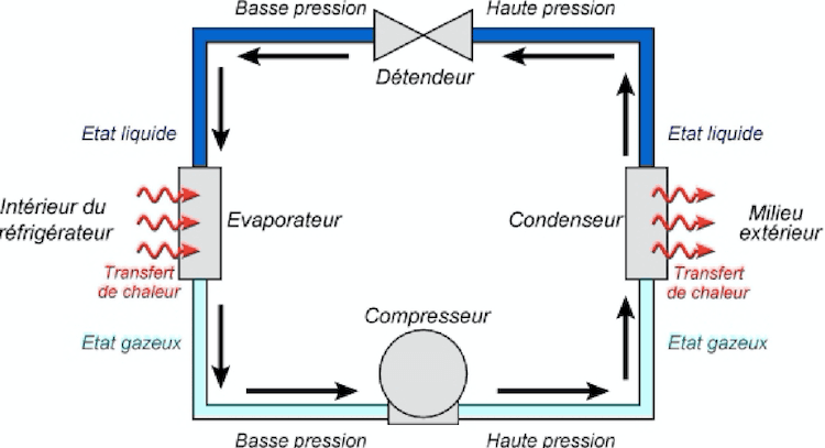 On peut donc définir le réfrigérateur non pas comme une machine créant du froid, mais plutôt comme une pompe à chaleur.