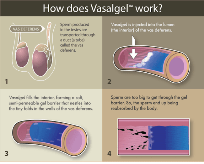 VasalgelTM est un contraceptif non hormonal dont les effets sont à long terme. Il a l’avantage d’être réversible et de ne pas avoir recours à une opération chirurgicale.
