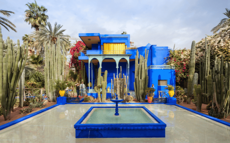 Le jardin Majorelle fait partie des incontournables de Marrakech. Racheté et restauré par Yves Saint Laurent et Pierre Bergé, ce jardin regorge de poésie. Trois cents espèces de plantes venues des cinq continents s’épanouissent en contraste avec la couleur bleue de l’atelier, transformé en petit musée.