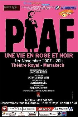 Mais surtout, il leur sort son atout maître : Edith Piaf sera de retour à Marrakech ?au Théâtre Royal, le 1er novembre prochain, pour une représentation unique au Maroc. Edith Piaf est l'héroïne, d'une pièce créée en 2005, actuellement en tournée mondiale, intitulée «Piaf, une vie en rose et noir». Elle raconte l'histoire mouvementée de la chanteuse, qui, 44 ans après sa mort, continue de faire vibrer un très large public.