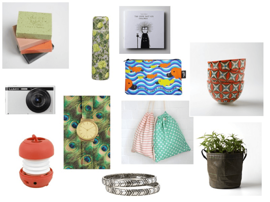 Dans cette sélection on retrouve les cadeaux « pratiques » comme le termos, le « bac à fleurs » flexible que l'on peut amener partout, la trousse pour enfants aux motifs Australiens ou le lot de trois bols hippy.