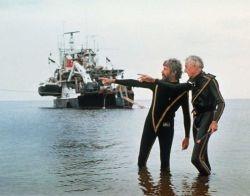 Le commandant avec son fils aîné, Jean-Michel, en mission d'exploration sur l'Amazone (PHOTO AFP)