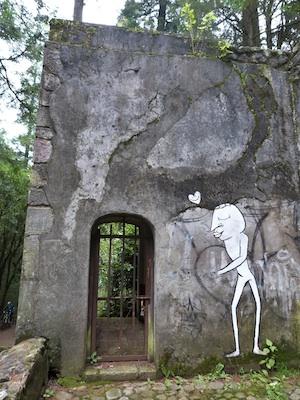 La nature et les graffitis ont pris possession des anciens lieux de retraite des ermites (Lucie Louâpre)