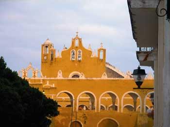 Comme ce fut le cas partout au Mexique, les Espagnols utilisèrent les magnifiques pierres taillées des constructions indigènes pour bâtir la nouvelle ville européenne. En effet, le monastère de Saint Antoine de Padoue fut bâti avec les pierres de la pyramide de Popul Chac. Tout un symbole : du temple maya le plus important, détruit, naquit l'un des premiers et plus importants sanctuaires catholiques de la Nouvelle Espagne, fondé par Fray Diego de Landa et les missionnaires franciscains. Aujourd'hui, les traces des artisans mayas sont encore visibles sur ses pierres. Il fallait un couvent monumental, majestueux, pour imposer la culture hispanique et la religion catholique aux vaincus et marquer la fin d'un monde et l'avènement d'un autre. En fait, l'atrium du couvent est le plus grand après celui de Saint Pierre à Rome et chaque 15 août s'y célèbre la fête de la Vierge d'Izamal. A côté, se trouve l'église. A l'entrée, des fresques datant du XVIe siècle ornent le sanctuaire.