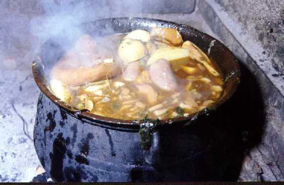 ? 500 g de viande salée ? 250 g de filet de porc ? 250 g de bacon ? 250 g de pieds de veau ? 250 g de salami ? 250 g de saucisses coupées dans le sens de la longueur ? 250 g de chorizos (saucisses épicées) coupées dans le sens de la longueur ? 1 pied de cochon ? 1 petit poulet en morceaux