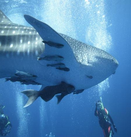 Impressionnant par sa taille, le requin baleine est pourtant bien inoffensif voire affectueux avec les plongeurs. (photo OEE)