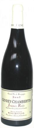 Cuisine et Vins de France : Sélectionné Tête de Cuvée, c'est-à-dire Vigneron de l'année en Bourgogne. "Il y a trois ans, nous découvrions Bernard Bouvier. Depuis, il a confirmé son talent et tourné une page en quittant Marsannay, son village natal, pour s'installer 10 km plus loin à Gevrey-Chambertin, la mecque des vins rouges avec Vosne-Romanée. Un symbole ! Il possède 6 ha de Gevrey, dont des vieilles vignes de 80 ans, qu'il isole dans sa cuvée Jeunes Rois. 2001 en était son premier millésime et ce fut un brillant début : le vin est élégant, soyeux, profond, complexe. Aux antipodes des finales robustes des années précédentes. "Au début, on vinifie pour faire de la concentration, explique Bernard Bouvier. Quand on y est arrivé, on se rend compte que les grands vins, c'est autre chose, c'est de l'équilibre. En goûtant chez les autres j'ai pris conscience que mes vins avaient parfois des finales amères, abruptes". Et voilà Bernard apprenant à vinifier pour laisser parler le terroir... Perfectionniste, il teste huit fûts différents pour cette cuvée, chacun apportant un peu de chocolat, de tanins ou de gras. "Plus on devient bon vigneron, plus les détails prennent de l'importance", dit-il. Il ne parlait pas de lui, mais aujourd'hui il peut endosser la phrase."