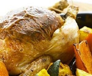 3. Faire cuire le poulet à 180º C pendant 1 heure 15, ou jusqu'à ce que le jus du poulet soit clair.