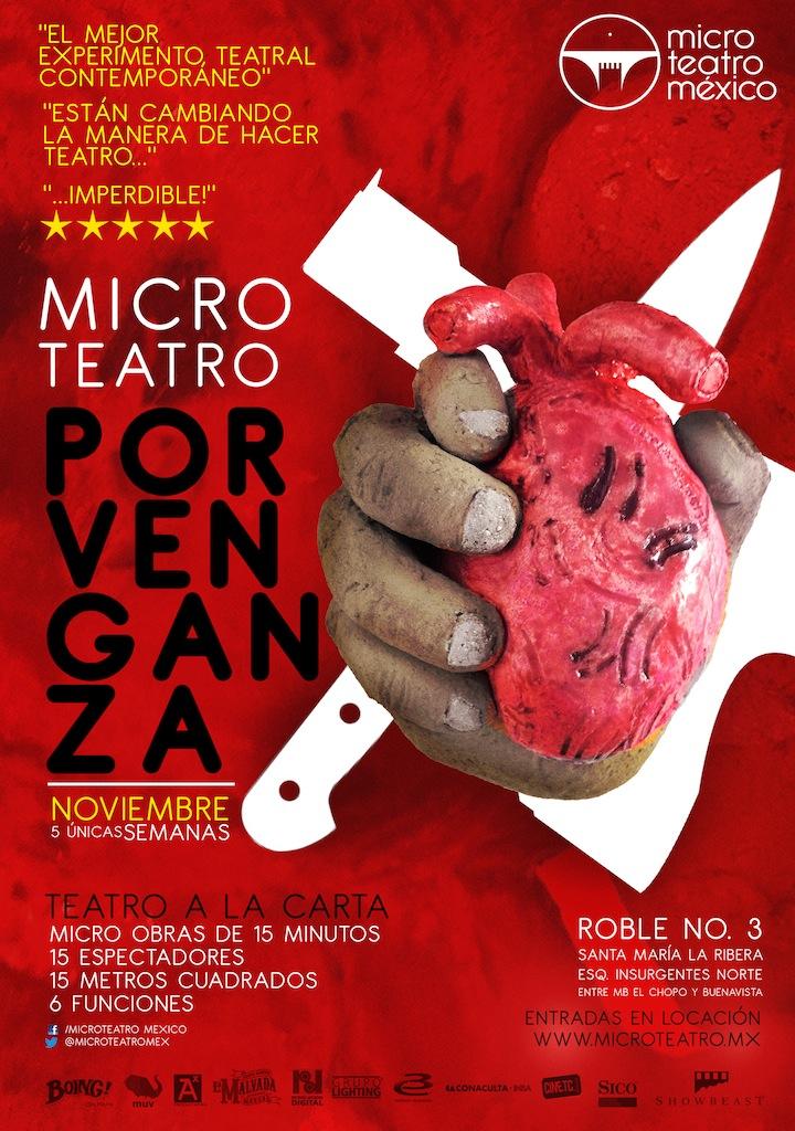 La quatrième saison de Microteatro débute ce jeudi 14 novembre dans le quartier Santa María La Ribera, à Mexico. Quatorze pièces de théâtre de 15mn traiteront de la vengeance sous toutes ses facettes. Les spectateurs, 15 maximum par représentation, choisissent quelles ?uvres ils souhaitent voir et déambulent ensuite dans une grande maison de pièce en pièce (d'environ 15m2) pour s'immerger dans des univers très différents. Créé à Madrid, ce concept très original qui permet d'être au plus près des comédiens et de vivre une expérience théâtrale intimiste est arrivé à Mexico l'année dernière.