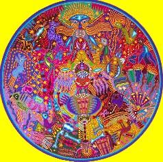 Tableau huichol en fil de laine, artiste: José Benitez Sánchez, 2000 (Source : Musée d'arts populaires de Zacatecas)