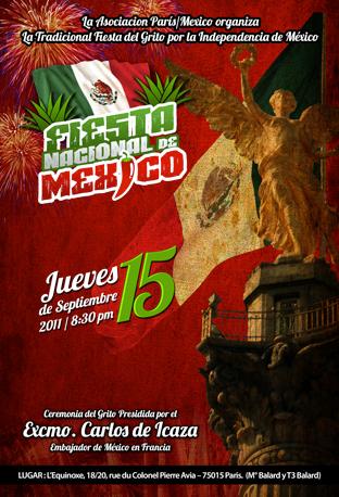 Comme chaque année à l'occasion de la fête nationale du Mexique, l'association Paris/México organise, le mardi 15 septembre à partir de 20h00, la célébration du 201ème anniversaire de l'indépendance du Mexique, avec une grande soirée à la Salle Equinoxe.