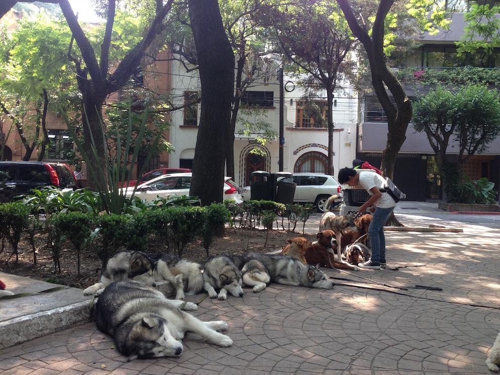 ??Trois jours par semaine, du matin au soir, les deux hommes baladent des dizaines et des dizaines de chiens. Parallèlement, ils leur enseignent les bonnes manières et le savoir-vivre. « Comme nous sommes toujours dans la même zone, les propriétaires viennent systématiquement nous trouver », expliquent les compères. Leur salaire ? 600 pesos pour l'ensemble de leur oeuvre. On dit que le chien est le meilleur ami de l'homme. Faux. Il est le meilleur ami des Mexicains et surtout des promeneurs.