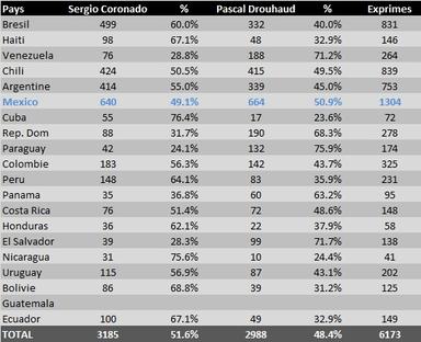 Antigua-et-Barbuda, Argentine, Bahamas, Barbade, Belize, Bolivie, Brésil, Chili, Colombie, Costa Rica, Cuba, Dominique, Equateur, Grenade, Guatemala, Guyana, Haïti, Honduras, Jamaïque, Mexique, Nicaragua, Panama, Paraguay, Pérou, République dominicaine, Saint-Christophe-et-Niévès, Sainte-Lucie, Saint-Vincent-et-les-Grenadines, Salvador, Suriname, Trinité-et-Tobago, Uruguay, Venezuela.