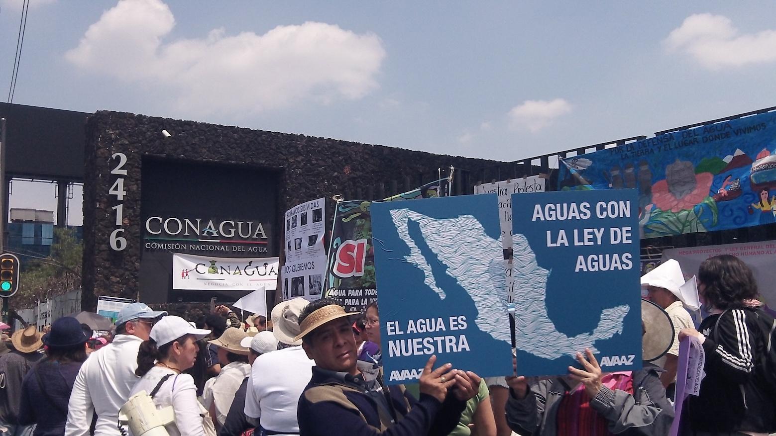 Or, la nouvelle "Loi de l'eau" élaborée par la CONAGUA (Commission Nationale de l'Eau) stipule que chaque Mexicain devra recevoir seulement 50 litres d'eau par journée pour ses besoins basiques, moins de ce que marquent les standards internationaux de l'Organisation Mondiale de la Santé, pourtant reconnus en novembre 2014 par la Cour Suprême de Justice de la Nation (SCJN). Les experts de l'environnement et des organisations sociales ont déclaré que cette quantité viole le droit humain à l'eau, puisque la consommation minimale est de 100 litres. Brenda Rodríguez Herrera de la Coalition d'Organisations Mexicaines pour le Droit à l'Eau (COMDA), qui intègre 16 ONG et des mouvements dédiés à la défense de l'eau, a expliqué que le Mexique comptait suffisamment de cette ressource pour doter du double de cette quantité chaque Mexicain et qu'il y avait dans ce domaine plusieurs traités internationaux, signés par l'Etat mexicain, à respecter.