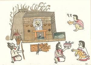 Le temazcal, mot qui provient du nahuatl temazcalli , signifie maison de vapeur (temaz vapeur et calli maison). L'équivalent du temazcal en maya est zumpul-ché et en mixteco Ñihi. (Reproduction libre de droit)