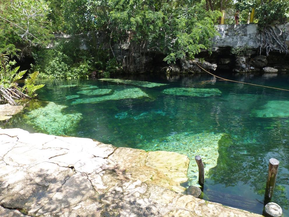 cristalino cenote, à 40 km de Playa del Carmen, vaut vraiment le détour. Il est possible de s'y rendre en bus et, sur place, l'accès à la baignade est facile. L'endroit permet de nager, apercevoir quelques poissons-chats et de sauter du haut du