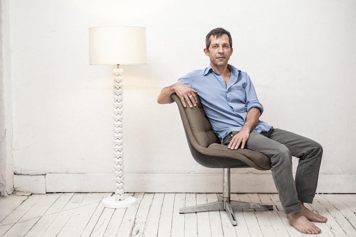 Thierry Jeannot dans son atelier du centre-ville, à côté d'une de ses oeuvres. (Photo ©Romain Thieriot)