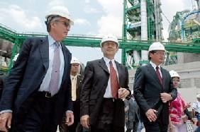 (de g. àd.) Bruno Lafont, directeur général de Lafarge international, Sergio García de Alba, ministre de l'Economie, et Miguel Ángel Osorio Chong, gouverneur de l'Hidalgo, étaient venus inaugurer la planta. (Photo : Notimex)