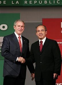 Après le Brésil, l'Uruguay, la Colombie et le Guatemala, Le président Américain s'est rendu pendant deux jours à Merida dans le Yucatan où l'attendait son homologue mexicain. Une première rencontre entre les deux hommes qui a eu pour thème principal le problème de l'émigration vers les Etats-Unis. Lors de son discours, Bush a promis de faire tout son possible pour l'adoption par le congrès d'une réforme complète sur l'immigration. Son projet repose sur un contrôle accru à la frontière pour empêcher les entrées d'individus menaçants pour la sécurité et l'économie du pays et permettre aux autres de s'intégrer plus rapidement par le biais de millions de régularisations. De son côté Calderón à fait part de ses réserves quant à l'efficacité d'un tel décret et à réaffirmé son désaccord par rapport à la construction du mur à la frontière. Pour lui, « il serait plus utile de construire 1 kilomètre de route dans les régions de Michoacan ou Zacatecas que de monter 10 kilomètres de murs à la frontière ». Son souhait est ainsi d'orienter l'aide américaine vers un plan de développement au Mexique, qui aurait pour effet de limiter le départ d'une main d'?uvre prête à tous les sacrifices.