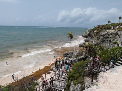 Depuis plusieurs mois, les plages de la côte est du Mexique sont recouvertes d'algues dites sarguasses. Chaque jour, les habitants les ramassent autant qu'ils peuvent mais la tâche se révèle difficile. En tout, ce sont plus de 200 km de plages qui connaissent ce phénomène. D'où viennent ces algues ? Franck Mazéas, qui travaille à la Direction de l'environnement, de l'aménagement et du logement, explique qu'elles arrivent des Antilles et également du nord du Brésil et de la Guyane, portées par le courant des Antilles.